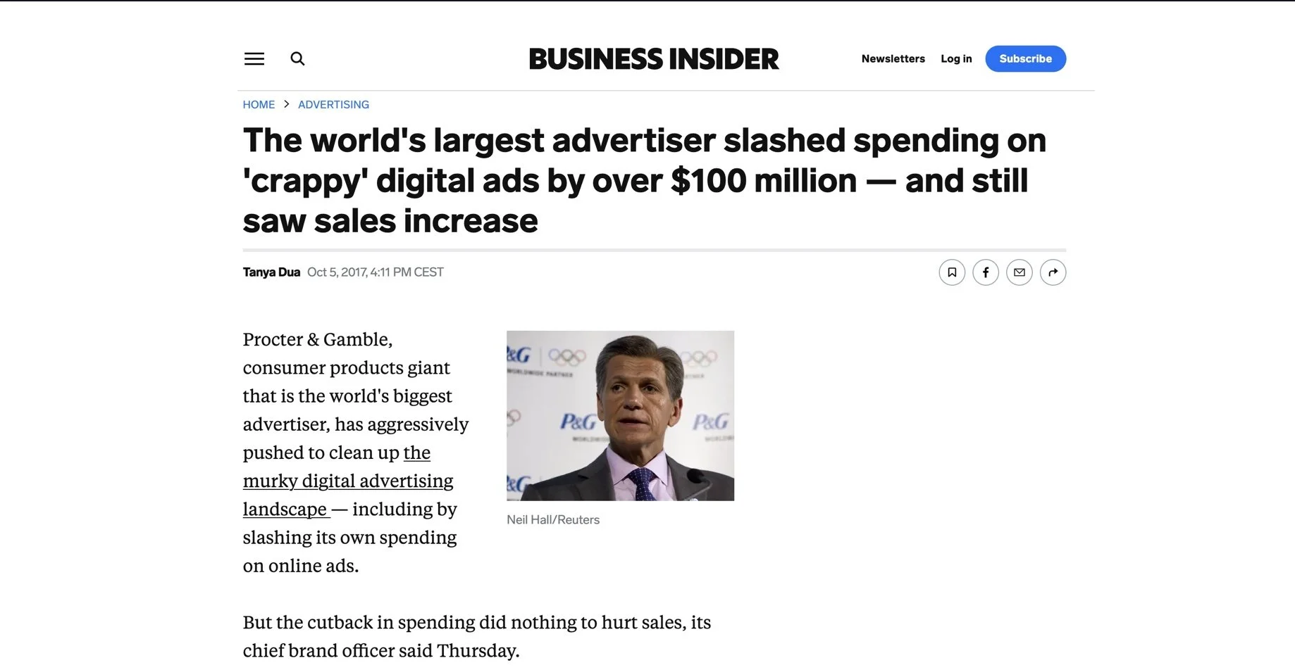 In a nutshell: I told a cleaning giant to clean up all their shitty banners out of the internet. And guess what, they actually did. At least for a couple of months, increasing sales and reach by 10% worldwide, saving up $200m. I was 6 months shy of that billion.